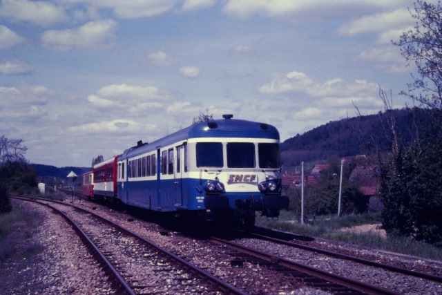 | Commentaire photo - A droite, l'Express 6111 Limoges - Agen, laissant derrière lui la Vallée de l'Homme, rejoint la ligne venant de Libourne, qui vient de franchir la Dordogne. La fausse double voie enjambera à nouveau la rivière avant d'entrer en gare du Buisson. | |