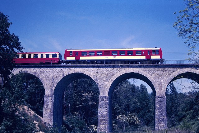 | Commentaire photo - Assurant un "omnibus" Agen - Monsempron_Libos, un tout jeune X 2200 tracte une remorque Decauville en fin de vie. Les remorques Decauville symbolisent les ultimes dessertes de bien des lignes fermées dans la seconde moitié du XXème siècle, elles furent leur dernière chance en quelque sorte. | |