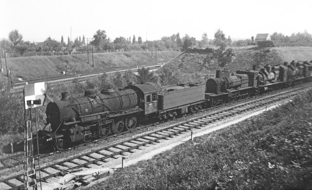 Ce train d'épaves croupit sur le raccordement sud vers la ligne de Clamecy. Les initiés sauront identifier chaque locomotive. A l'arrière plan, les voies Paris - Nevers côtoient les voies Bourges - Cosne.