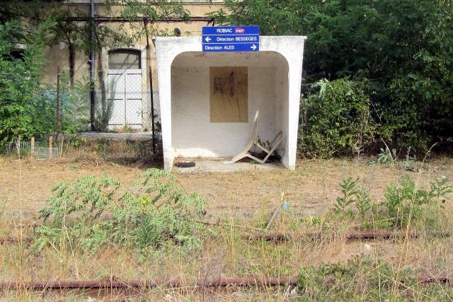 | Commentaire image : Avant de suspendre les circulations en 2012, la SNCF avait réduit le point d'arrêt à sa plus simple expression. En 2019, la reprise restait programmée... sur le papier. | ![]() |