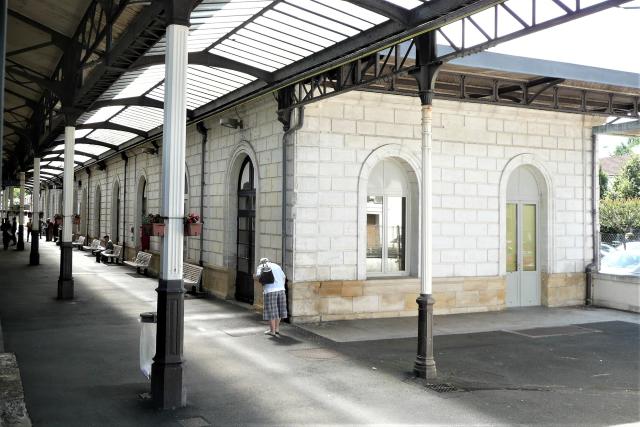 | Commentaire photo - Les compagnies de chemins de fer ont été les premières à mettre au point les "serres bioclimatiques" que sont les halles de gares, procurant aux villes desservies un prémonitoire "îlot de fraîcheur". Quoi qu'il en soit, à Bergerac, de manière caricaturale, les usagers du rail bénéficient d'une desserte convenable vers la métropole régionale, mais ne disposent d'aucun train pour gagner la préfecture du département. | |