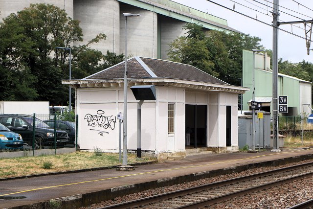 | Observations - Un silo embranché pouvant en cacher un autre, l'actuel silo Soufflet voisinait jusqu'en 2015 avec le silo Agrial, dont la destruction a permis la création du parking jouxtant l'abri. A deux pas, heureusement invisible, l'immonde plateforme logistique d'Intermarché est, quant à elle, embranchée au proche échangeur de l'autoroute A 10, tout comme à la N 10 aménagée et gratuite. | |