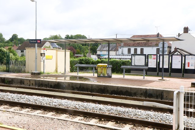 Observations - La frêle ombrière du quai impair (certes le moins fréquenté à priori) ne protège guère les usagers du vent et de la pluie battante. Depuis 2025, la gare de Paris_Lyon n'est plus qu'à 2,50 € maxi du Loiret, grâce au tarif Navigo de la ligne R du Transilien. | |