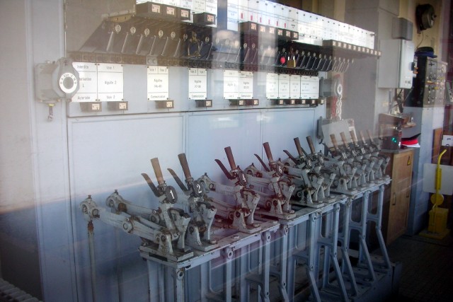 | Commentaire photo - Avec, en 2015, un ultime aller-retour quotidien en autorail entre Clermont Ferrand et le Mont Dore, les voyageurs ne sont plus légion à pouvoir admirer ces reliques des années 1950 donnant sur le quai. Voici un demi-siècle, une cinquantaine de circulations s'entrecroisaient ici chaque jour l'été, et les aiguilleurs qui se relayaient devaient avoir les poignets solides. | |