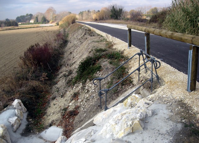 | Commentaire photo - Sous la Via Venaissia toute neuve, l'aqueduc a été dégagé et rafraîchi. La photo est prise en direction du plateau de la gare et d'Orange. | |