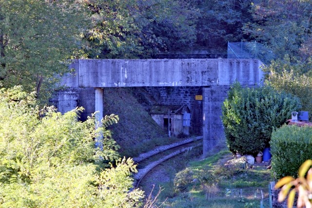 | Commentaire photo - La voie débouche tout juste du souterrain de l'Altier, dont la bouche est assortie du "traditionnel" abri. | |