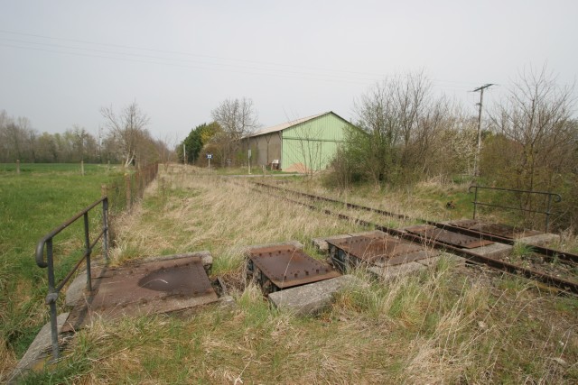 | Commentaire photo - L'ouvrage porte le deuil de la voie paire, tandis qu'un hangar et une ligne ERDF banalisent un paysage fragile. | |