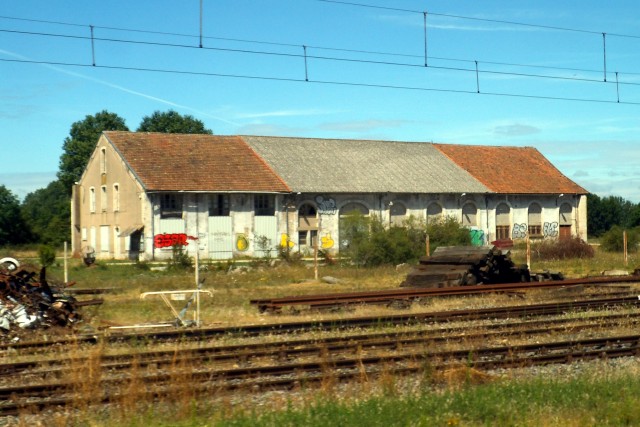 | Observations - Du dépôt Midi de Sévérac le Château, il ne reste plus que le bâtiment de l'ancien atelier, qui était à vendre ou à louer en 2017. Il était jadis encadré par deux rotondes de dix voies chacune. | |