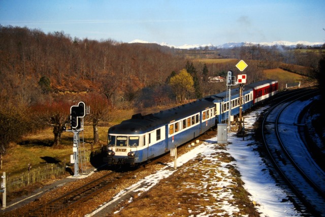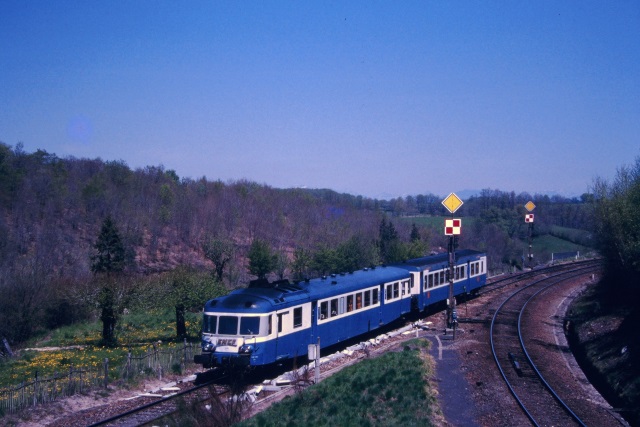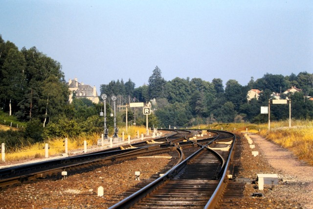 | Commentaire image : En 1989, le concept de TER n'avait que trois ans et l'on parlait encore d'"Express" pour ce convoi Aurillac - Brive laissant derrière lui les carrés et les avertissements mécaniques protégeant la jonction des deux lignes. | ![]() |
