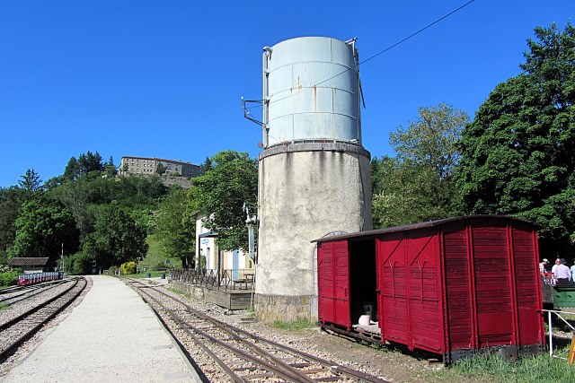 | Commentaire photo - Le château d'eau à prise directe et le château seigneurial devenu couvent semblent se défier par-dessus le BV. Au fond, le PN de la Route du Pont du Roi (IMH) ferme la gare côté Tournon. | |