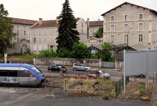 | Commentaire photo - Les wagons étaient engagés sur la voie transversale au moyen d'une plaque tournante, toujours en place vers la gauche. A l'opposé, après avoir traversé l'avenue du Maréchal Juin, l'embranchement pénétrait dans les emprises de la Seita, dont les bâtiments administratifs, bien représentifs du XIXème siècle, sont voués à une prochaine démolition. Cachées, les structures industrielles ont déjà été abattues. | |