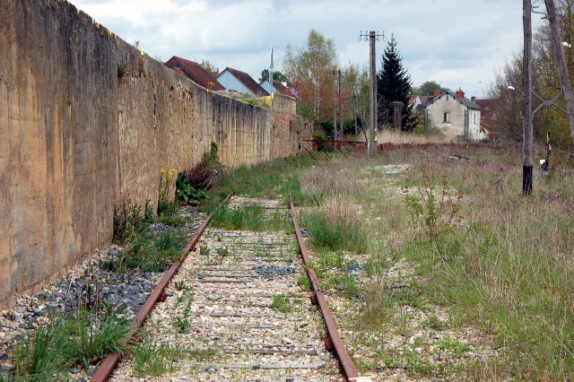 | Commentaire image : En 2016, la voie longeant le quai de chargement des silices à Souvigny, qui pouvait accueillir une demi-douzaine de wagons, est vouée aux herbes folles. La SNCF - l'Etat donc - s'acharne à cautériser le réseau capillaire. Au fond, au delà de la barrière à croisillons surannée et des poteaux télégraphiques d'un autre âge, on aperçoit le BV monocorps. | ![]() |