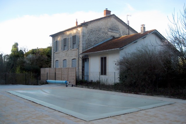 | Commentaire photo : Ni l'heure, ni la saison ne se prêtent encore à la baignade. L'eau de la piscine a remplacé celle du château d'eau, qui s'élevait derrière le BV primitif. | |