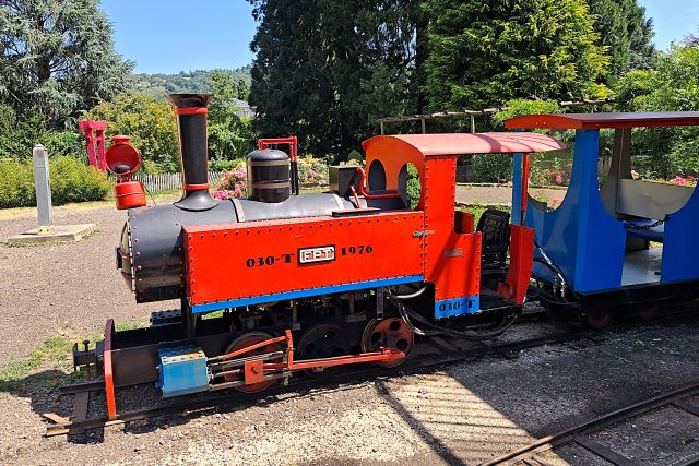 | Commentaire photo : La locomotive originelle du Petit Train, mise de côté un temps, a été totalement reconditionnée en 2020, et assure la remorque d'une seconde rame de deux voitures. | |