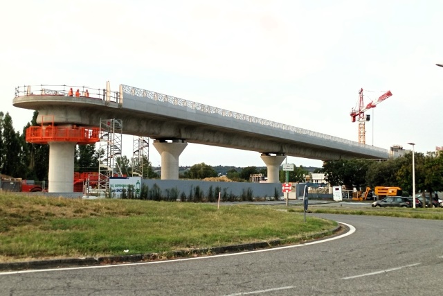 | Commentaire photo : A voir le viaduc permettant le changement de sens des rames, on se dit que le prolongement de la ligne C jusqu'à la mer n'est pas pour demain. La station-terminus se situe au niveau de la grue, au-dessus des voies de la Transversale Sud, avec Toulouse vers la droite. | |