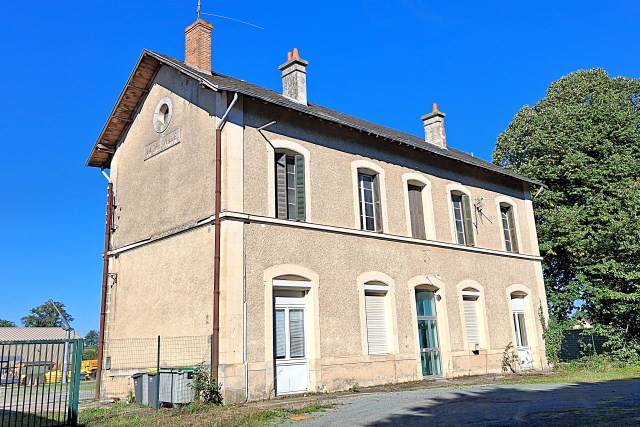 | Commentaire photo : L'ancien BV et une partie des emprises de la gare sont aujourd'hui dévolus à l'activité de la coopérative agricole Terrena. La direction du Blanc est à droite. | |