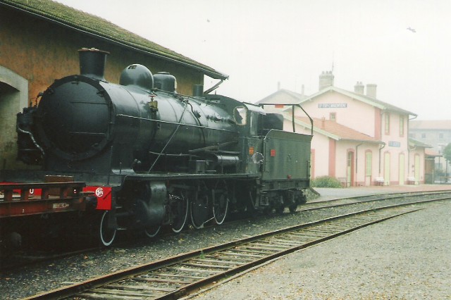 | Commentaire image : Garée un temps à Sainte Foy l'Argentière, la 140 C 287, qui avait assuré le 24 septembre 1975 le dernier train à vapeur français entre Troyes (Aube) et Sainte Colombe sur Seine (Côte d'Or), a depuis longtemps quitté les Monts du Lyonnais pour la Sologne, où elle est exposée au château de la Ferté Saint Aubin (Loiret). | ![]() |