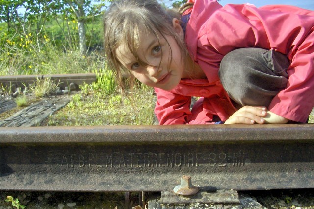| Commentaire image : A Moutiers en Puisaye, le rail PLM est d'origine : il a été laminé à Terrenoire en 1882! Une santé de fer et une longévité que nous souhaitons à cette délicieuse enfant. | ![]() |