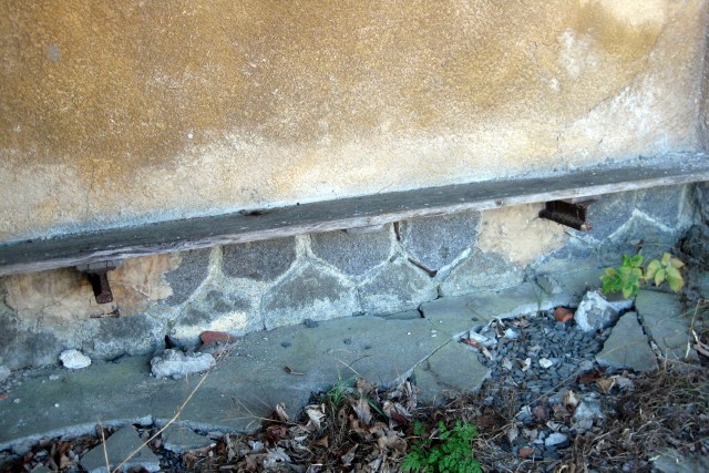 | Commentaire image : Sous l'abri, la planche, qui tient lieu de banc, est soutenue par deux "bouts" de rail retournés. | ![]() |