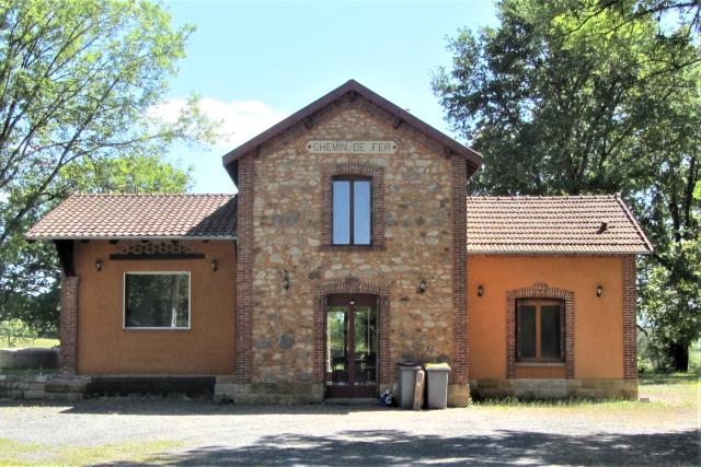 Commentaire image : La gare d'Arpheuilles Saint Priest a finalement été rachetée par des gens du village et joliment restaurée dans la seconde moitié des années 2000. A gauche, de l'ouverture côté cour de l'ancienne halle, ne subsiste que l'arc surbaissé. La direction de Marcillat est à droite. | ![]() |