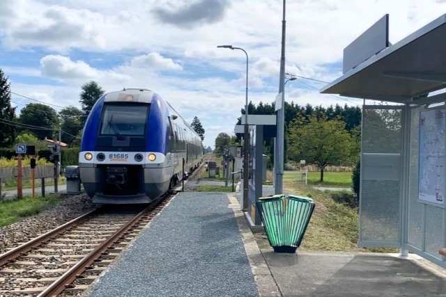 Commentaire image : D'avril à septembre 2023, seize gares et haltes de la ligne Bordeaux - Sarlat ont été rénovées. À la halte de Saint Antoine de Breuilh, le quai a été remis à niveau, un nouvel abri pour les voyageurs a été construit et l'éclairage a été refait. | ![]() |