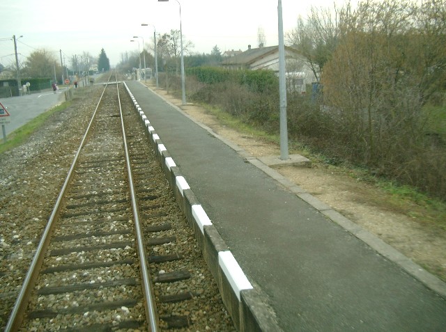 Commentaire photo : La nouvelle gare, vue ici en direction de Sarlat, se résume à un quai fréquenté par les élèves d'un établissement scolaire voisin. | |