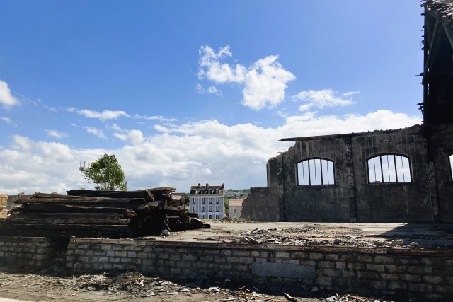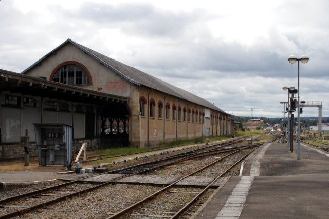 Commentaire image - L'interminable halle marchandises de Montluçon a été entièrement détruite courant 2024, vraisemblablement pour créer un nouvel accès routier à la gare. C'est une "bonne" initiative dans la mesure où les cars TER supplantent petit à petit les déjà peu nombreux trains TER dans la seconde ville d'Auvergne. D'ailleurs, l'un des trois quais voyageurs a été supprimé par la même occasion. Au fond, le bel immeuble bleu se situe de l'autre côté du pinceau ferroviaire côté Gannat. | ![]() |