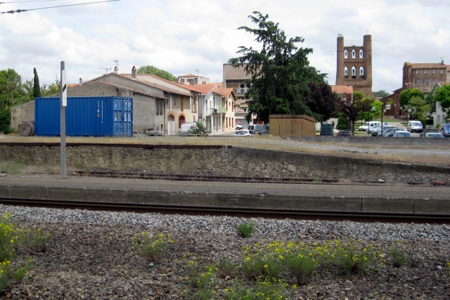 | Commentaire photo - Le quai découvert, qui prolongeait vers l'est la halle aujourd'hui démolie, ne masque pas la vue sur la bastide lauragaise, que domine depuis 1271 le clocher-mur de l'église Notre Dame de l'Assomption. | |