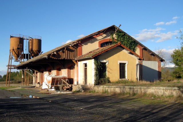 | Commentaire photo - L'aspect désolé du quai couvert fait rimer Courpière avec les croupières que la route a taillé au rail. La direction de Vichy est à gauche. | |