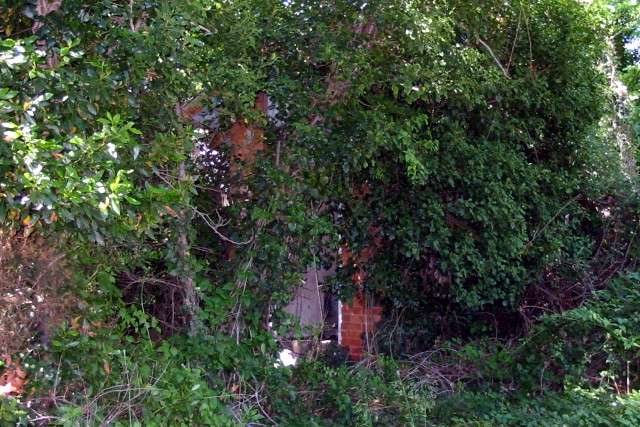 | Commentaire photo - L'édicule se devine à peine derrière la folle végétation. | |
