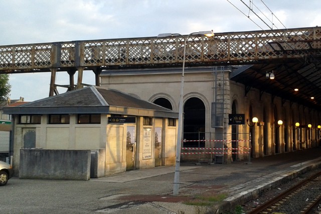 | Commentaire photo - Vers la gauche et au sud de la cour de la gare, se déployaient les installations - gare, échange, dépôt et ateliers - des tramways électriques ayant relié, de 1913 à 1949, Libourne à Saint André de Cubzac à l'ouest et à Puisseguin à l'est. | |
