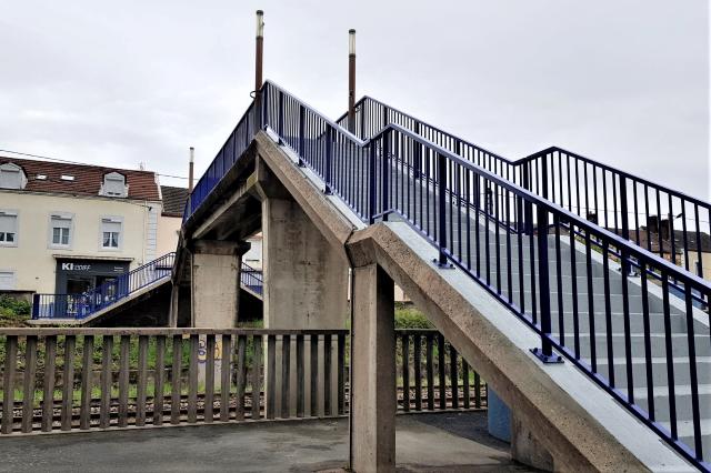 | Commentaire photo - En avril 2022, les rampes ont été remplacées et les marches rénovées. La direction de Paray le Monial est à droite. | |