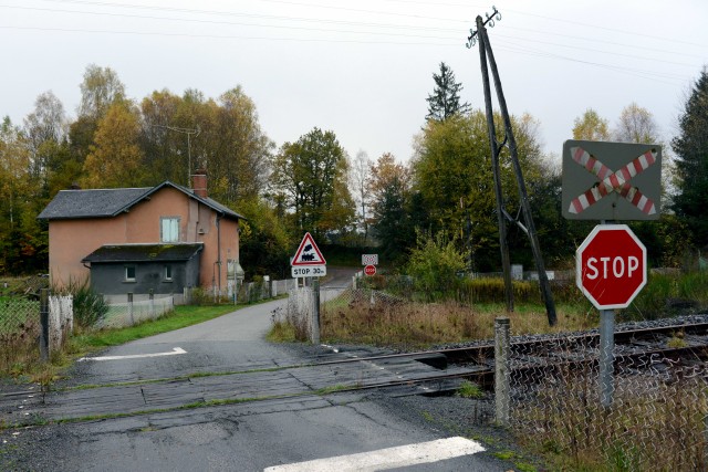 | Commentaire image : Se dirigeant vers le sud, cette petite route franchissait successivement les sections Montluçon - Eygurande_Merlines (au premier plan), Eygurande_Merlines - Laqueuille (derrière la maisonnette) et enfin Eygurande_Merlines - Bort les Orgues (au niveau de la ligne d'arbres). | ![]() |