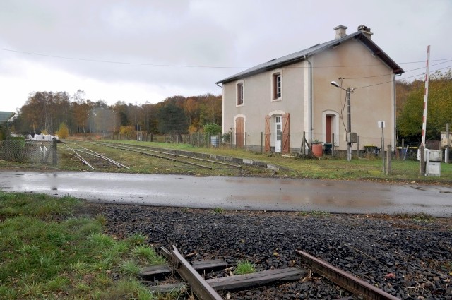Commentaire image : En 2020, les habitants de Charbonnières les Varennes s'appellent toujours les Coupaux et la ligne Lapeyrouse - Volvic demeure administrativement "inexploitée". SNCF Réseau a l'interdiction d'entretenir les lignes UIC 7 à 9, ce qui signifie, en creux, qu'elle a l'ordre de les désosser : la preuve. Cependant, les demi-barrières restent en place. | ![]() |