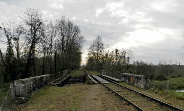 | Commentaire photo - Vu en direction du sud et de la gare d'Argent, le tablier supportait à gauche la ligne en provenance de Gien, et à droite la ligne en provenance d'Auxy_Juranville. | |
