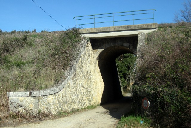 Commentaire photo - En s'élevant au-dessus de la plaine du Tricastin, où les clochers de Pont Saint Esprit le disputent aux tours de refroidissement de l'usine atomique, la ligne offre une vue étendue sur la toile de fond des Préalpes, du Vercors aux Baronnies et au Ventoux. La direction de Nîmes est à droite. | |