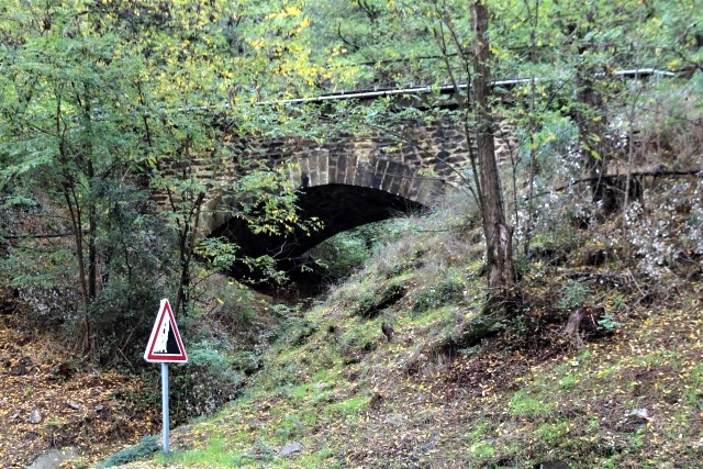 Commentaire photo - Le relief reste tourmenté, comme en atteste le panneau de signalisation. La direction de Nîmes est à droite. | |