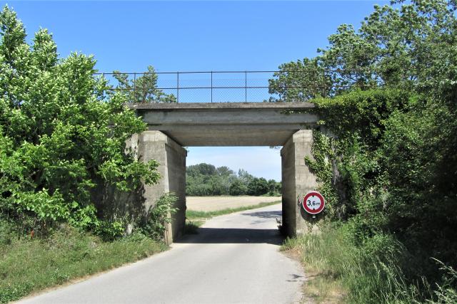 | Observations - En 2021, la vitesse limite du "barreau" Livron - la Voulte était 60 km/h. Repère de nivellement : 96,033 m. |