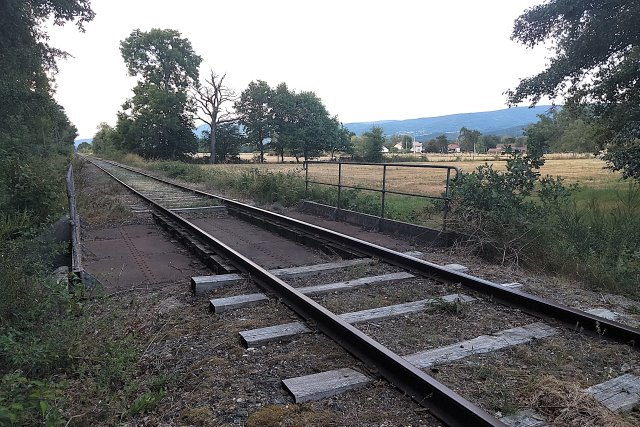 | Commentaire photo - Les traverses, au premier plan, ne sont à priori pas centenaires. La direction d'Ambert est au fond. | |