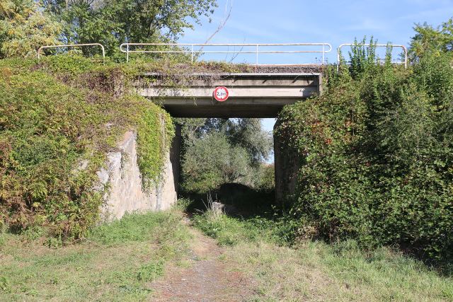 | Commentaire photo - On est en présence d'une situation classique, où les culées d'origine supportent un tablier de remplacement. La direction de Thiers est à droite. | |