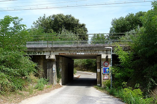 | Commentaire photo - Renforcer un ouvrage est admissible, mais faire aussi moche ne l'est pas. La laideur attire la laideur et désenchante le monde. La direction de Nîmes est à droite. | |