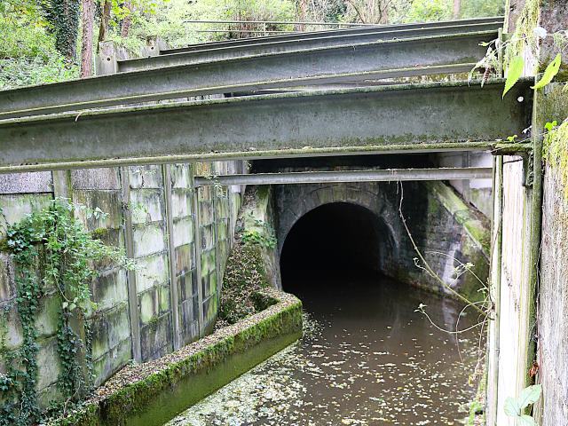 | Commentaire photo - Poutrelles et bardages sont nécessaires pour contenir les flancs de cet émissaire reliant plusieurs étangs entre eux. La direction de Thiers est à gauche. | |