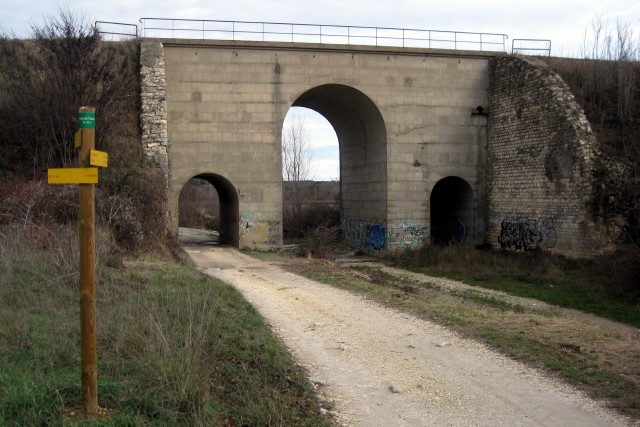 | Commentaire photo - Rien que du béton bétonnant, encadré par les immenses culées de 1840, semblables à des murs romains. La direction de Nîmes est à droite. | |