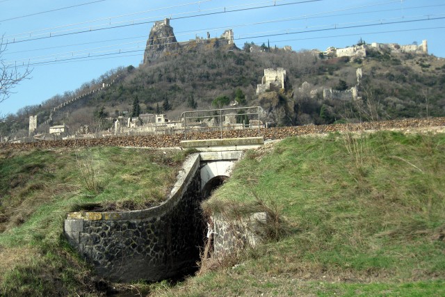 | Observations - Permanence des itinéraires : la ligne du Pouzin à Alès suivait en grande partie l'antique Voie des Helviens, qui reliait Valence à Nîmes - via Alba, la capitale des Helviens - et dont on a retrouvé bon nombre des bornes miliaires. Le projet d'autoroute A 79, imaginé sur le même axe pour soulager les autoroutes A7 et A9, ne verra probablement jamais le jour. | |