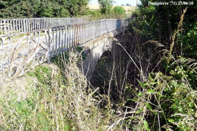 | Commentaire photo - Au premier plan, la rembarde en a pris un coup. La direction de Cluny est à droite. | |