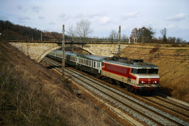 | Commentaire image : C'était au temps des "trains supplémentaires" : composé de voitures en livrée C160 gris et vert garrigue, le 10471 Paris_Austerlitz - Toulouse_Matabiau est remorqué par la CC 6533 de 1971 à persiennes horizontales et livrée Grand Confort. | ![]() |