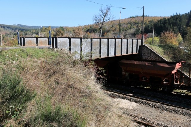 | Commentaire photo - Le tablier métallique offre une vue unique (vers la droite) sur la bifurcation des lignes d'Alès et de Mende. | |