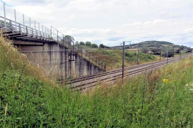 | Commentaire photo - A droite, la Montagne de Bard boursoufle l'horizon. Un télégraphe Chappe y fut installé : une "autoroute de l'information" a donc précédé ici la LGV (et sa fibre optique). La direction de Paris est à droite. | |