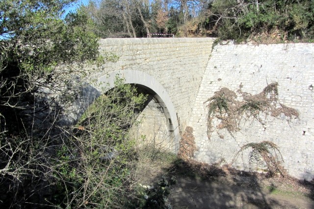 | Commentaire photo - Ces belles pierres du ferroviaire prennent le soleil au quartier de l'Eglisette, petit sanctuaire roman juché sur un promontoire rocheux dominant la plaine viticole. La direction du Vigan est à gauche. | |