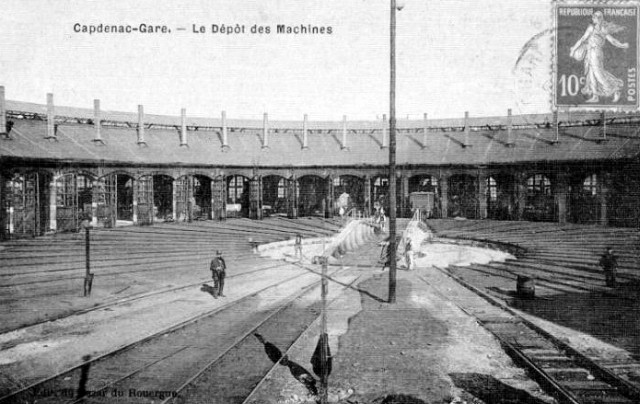| Commentaire photo - Le pont tournant de 23,50 m de diamètre desservait 36 travées. Le dépôt cessa son activité en 1961 et fut rasé dans les années 1970. | |